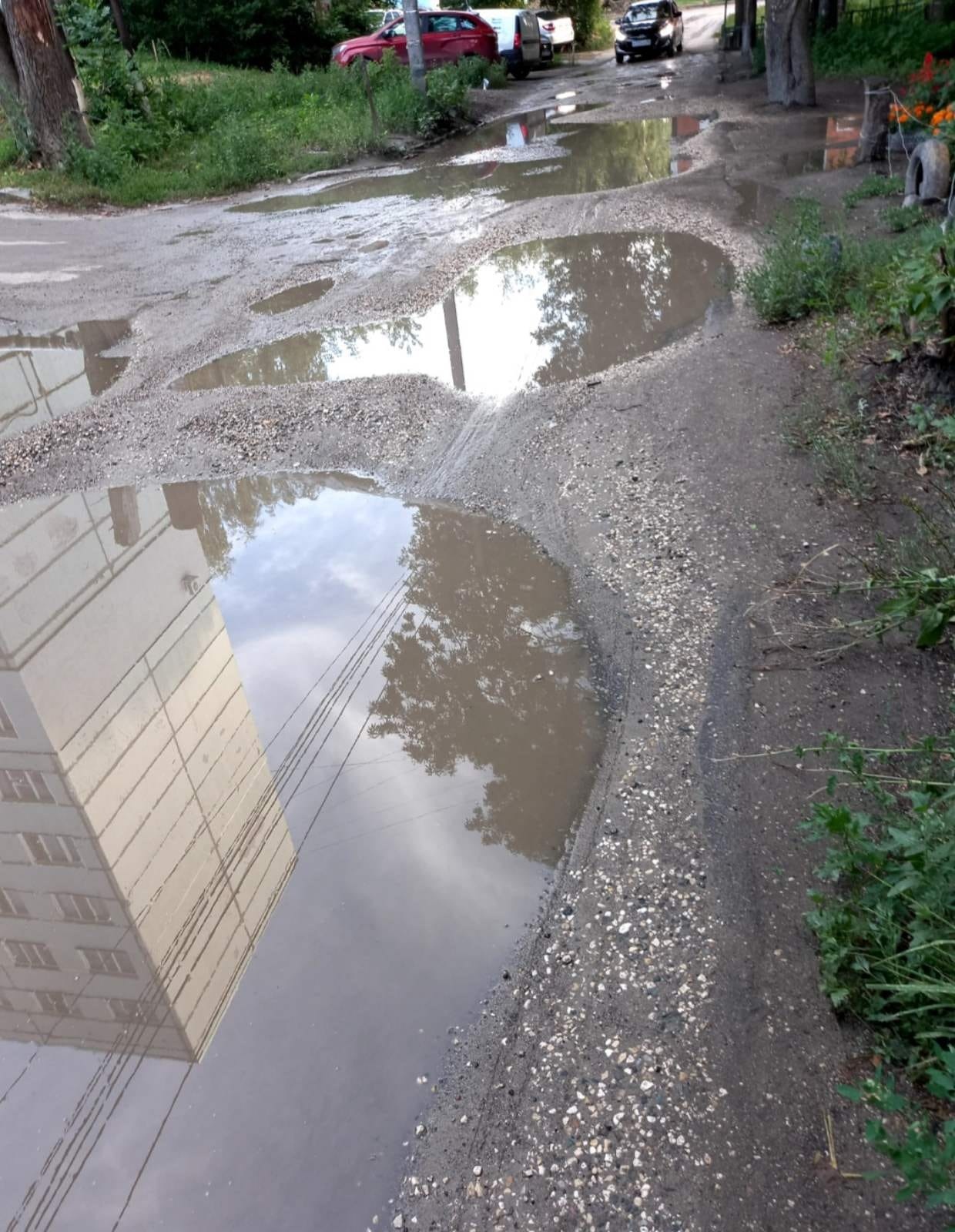 Фотографии дороги пензенцы прислали в редакцию «Столицы 58». На них видно, что проезжую часть усеивают огромные ямы, которые после дождя заполнило водой. Некоторые из луж напоминают бассейн, в котором можно без труда искупаться.