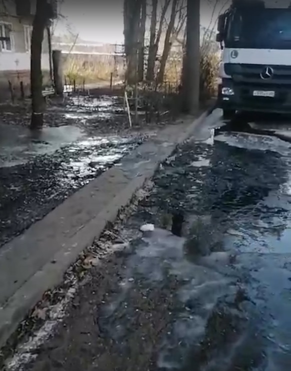 В чате администрации Октябрьского района в Viber жительница улицы Леонова, 34 прислала видео, на котором она сняла утечку воды. В результате придомовая территория оказалась залита водой. Она успела заледенеть, и передвигаться по двору стало опасно и трудно.